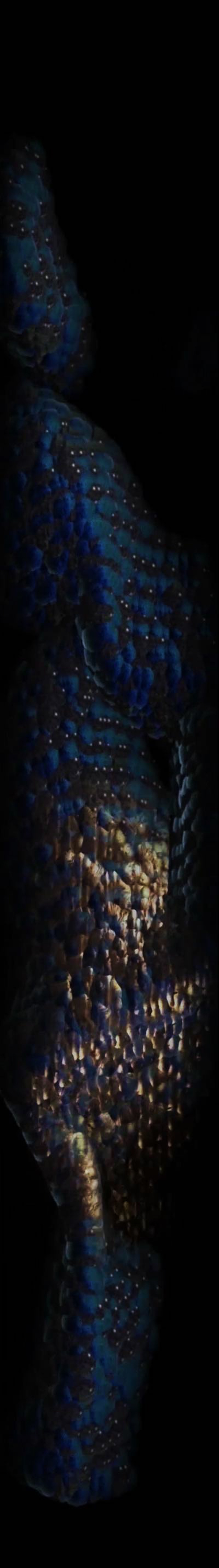 The musical surrounding builds up according to the range of motion of the dancers in the room. A hidden Kinect sensor detects and recognizes each person by skeleton tracking and the data concerning an individual's gestures will be related to a musical layer: the first visitor could be responsible for the rhythm section, the second one for bringing out a melody, the third one for releasing a voice chorus, and so on. A subtle relation grows between the dancers' enthusiasm and their acoustic reward. Along with the music, a dynamic graphic illustration is screened throughout the room in various spaces. All together the pictures represent a giant shedding snake. The music released activates the molt. When enthusiasm is at its height, all the computers present in the room turn on together and display a picture of the final state of the snake's molt.
